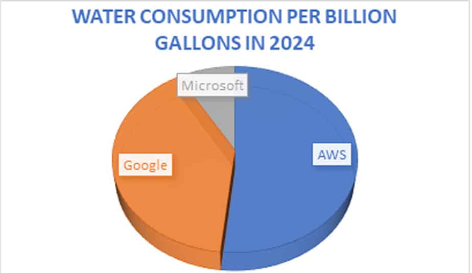 Figure 1 Water consumption in Data Centres per Billion Gallons in 2024